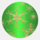 Redonda Pegatina de copos de nieve verde y dorado