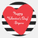 Pegatina de corazón rojo negro y blanco de San Valentín. Personaliza con cualquier texto.