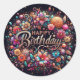 Redonda Pegatina de cumpleaños con flores vibrantes