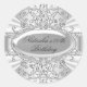 Pegatina de cumpleaños. Muestra elegante de damasco plateado y nombre de diamante. Tenga en cuenta: todas las imágenes planas. ¡No tienen joyas reales!