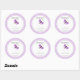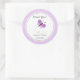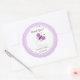 Pegatina redondo para el favor del cumpleaños con diseño de mariposa morada y fondo polkadot morado claro.