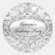 Redonda Pegatina de cumpleaños de Silver Diamond & Damask