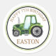 Redonda Pegatina de cumpleaños de tractor de granja verde