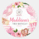 Redonda Pegatina de cumpleaños del Carnaval Rosa
