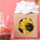 El diseño de los girasoles de bonito tiene "¡Feliz cumpleaños!" en escritura amarilla. El diseño se puede personalizar con el nombre o el mensaje.