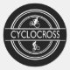 Este pegatina Cyclocross cuenta con un piloto CX de bunnyhopping y un motociclista CX que se ejecuta dentro de círculos concéntricos.
