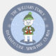Un caprichoso y atrevido pegatina de la vuelta azul del feriado que presenta un oso polar parado en la nieve con regalos . La plantilla proporcionada facilita su personalización con su nombre y dirección. © ArianeC Ilustraciones-Todos los derechos reservados