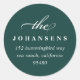 Los pegatinas de direcciones de retorno simples y elegantes de 1,5" presentan su dirección de retorno con letras blancas en un rico fondo verde forestal, acentuado con un guión de caligrafía floreciente. Diseñado para coincidir con nuestra colección de tarjetas de vacaciones Simplicity.
