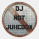 Un pegatina DJ genial. Un fondo metálico con el DJ de texto no jukebox y un signo prohibido de grunge rojo.