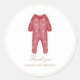 Selle sus sobres o favores con este adorable pegatina de ropa de bebé rojo color agua, perfecto para una acogedora ducha de bebé de invierno.