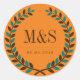 Pegatina de laurel de época y rústico con monograma de novia y novio. Estilo clásico gracias pegatina por su elegante boda, fiesta de compromiso o ducha de novia. Personalizar la redacción para cualquier ocasión, como ducha de bebé, aniversario de boda, fiesta de graduación o fiesta de cumpleaños. Decoren sus favores partidarios con esta etiqueta pegatina. Puede personalizar del color de fondo del pegatina haciendo clic en el botón personalizar.
