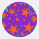 Un pegatina con un fondo violeta y verde giratorio, repartido entre mágicos, naranjas brillantes y estrellas verdes. Un diseño de personalizable morado, verde y naranja para que añadas tu propio texto, imágenes e ideas. Creado mediante técnicas digitales por Jess Perry.