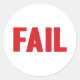 Pegatina con "FAIL" en letras rojas grandes.