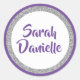 Redonda Pegatina de Favor del Nombre Púrpura y Plata Purpu
