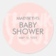 Redonda Pegatina de favoritos de Baby Shower rosado en gra