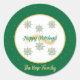 Felices fiestas- fondo verde blanco, puntos purpurinas dorados, adornos de copos de nieve rojos verdes