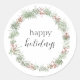 Adorna sus regalos y sobres con este hermoso pegatina con una corona de acuarela creada por Night Sky Paperie. El pegatina tiene un mensaje de "vacaciones felices" en el centro del tamaño de la corona: 1,5 pulgadas o 3 en forma: redondo Fin: mate