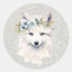 Pegatinas de vacaciones de animales del Ártico invernal con un joven zorro blanco acuarela en una ventisca de flores grises azules. Ideal para cumpleaños/Baby Shower de invierno, tarjeta de Navidades y más!