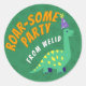 Complete su aspecto fiesta con estos editables Pegatinas de la Ronda de Dinosaurios! Adorable para sellar sobres, bolsas de favoritas o tapones de quequitos. Presenta un lindo brontosauro con el texto "ROAR-some Fiesta!", perfecto para cualquier celebración de cumpleaños de dino.