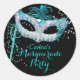 Redonda Pegatina de Fiesta de mascarada de esparkle azul