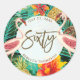 Redonda pegatina de flamingo tropical de sesenta años