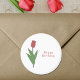 Redonda Pegatina de flor de Tulip Pastel Rojo Botánico