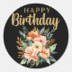 Redonda Pegatina de Flores acuáticas de cumpleaños feliz