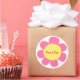 Un pegatina de flores rosadas, muy lindo y retro, listo para personalizar con el nombre de su hijo. Diversión para fiestas, etiquetas de regalo o etiquetado.