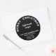 Feliz Navidad! Una de las fiestas más celebradas del año. También es una de las mejores temporadas para promocionar su negocio. Pegatina de forma redonda con Feliz Navidad, su nombre de negocio y otra información de su negocio. Puede utilizarlo como accesorio de su material de embalaje de producto para promocionar su marca de producto. También puede utilizarlo como material de marketing para promocionar su negocio a clientes o clientes. pegatina de personalizable que puede utilizar para crear conciencia de marca. Puedes usarlo en diciembre o Navidades en julio. Los colores de diseño son textos blancos sobre fondo negro. Para personalizar de este pegatina, cargue el logotipo de su empresa, escriba su nombre de negocio, dirección y número de teléfono. Después de subir el logotipo y escribir textos, por favor compruebe la apariencia. Si la apariencia le resulta agradable, puede realizar su pedido ahora. Si necesita cambiar el tamaño y mover el logotipo y los textos para que encajen en este pegatina, cambie la herramienta de diseño. También puede realizar otros cambios en la herramienta de diseño según la apariencia de este pegatina que prefiera, como cambiar el color de fondo, el color del tipo de letra y el estilo del tipo de letra. Feliz Navidad! Te deseo más ventas esta fiesta.