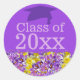 Redonda Pegatina de graduación morada con flores de primav