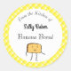Un pegatina de hornear o de pan que dice "From the Kitchen of" (De la cocina de) con letras antiguas y retro editables, y un lindo arte vintage de una rebanada de pan sobre fondo de manta amarilla y blanca.