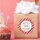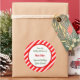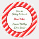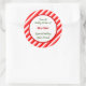 pegatinas panaderos Personalizados con un libreto verde y letras rojas antiguas en un patrón vacacional de grandes rayas rojas, blancas y rosadas diminutas.