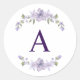 Agrega un toque suave y elegante a los detalles de tu boda con esta calcomanía floral personalizada. Con un delicado diseño floral de lavanda y una letra de monograma personalizada, esta calcomanía es perfecta para cajas de propuesta de dama de honor, favores de boda y regalos para la fiesta de la novia.