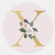 Pegatina de iniciales de oro de rosas de primavera letra X