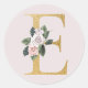 Pegatina de iniciales de oro de rosas primaverales letra E