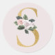 Pegatina de iniciales de oro de rosas primaverales letra S