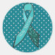 Pegatina de la Cinta de Concienciación sobre el Cáncer de Ovario verde azulado con puntos de polka. Difundir conciencia sellando sobres con este pegatina.