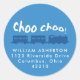 Diseñado para coordinar con la colección de cumpleaños del tren Lea Delaveris Design, este pegatina que presenta un tren azul contra un fondo azul más ligero con choo blanco ya que el humo puede ser utilizado como etiqueta de sello para sobres y dirección de retorno para invitaciones de cumpleaños.