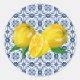 Pegatina bonito decorado con limones y azulejos azules italianos. Perfecto para usar como sello para sobres, o una ducha de novia favorece al pegatina para una ducha de limón. Diseñado para ti por Blackberry Boulevard.
