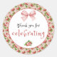 Este pegatina redondo de 1,5 pulgadas exuda la feminidad encantadora y el encanto vintage. Cuenta con un ilustracion antiguo de fresa como telón de fondo elegante, bellamente complementado con una elegante cinta rosa e imágenes de fresa. Un sofisticado guión dice "Gracias por celebrar", lo que lo convierte en una ficha perfecta para expresar gratitud y felicitaciones. Impreso de borde a extremo en vinilo duradero e impermeable, este pegatina se adhiere sin esfuerzo a laptops, botellas de agua, estuches de teléfono, planificadores y más. Altamente resistente a los arañazos y a la desvanecimiento, conserva su belleza durante mucho tiempo, añadiendo un toque de encanto sofisticado y sentimiento único a los empaques de regalo, favores partidarios, álbumes, decoración de revistas y cualquier proyecto DIY. Expresar su más sincero agradecimiento a sus seres queridos con este exquisito pegatina de fresa antigua.