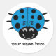 Una linda mariquita personalizado azul en un pegatina redondo. Personalizable para que puedas añadir tu nombre!