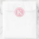 Redonda Pegatina de la letra blanca y rosa inicial monogra