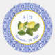 Redonda Pegatina de la pareja de limón y mosaicos azules l