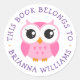 Las etiquetas de los libros o los pegatinas de las placas de biblioteca con un búho personalizado rosa. Personalizable de texto morado: "Este libro pertenece a" y su nombre personalizado. Ideal para etiquetar libros escolares y tu biblioteca personal o familiar