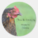 Una foto retratada de un pollo negro sobre un fondo verde, en un pegatina de una plancha de libros para que usted personalizar con su propio nombre.