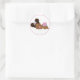 Este pegatina está decorado en tonos rosa pastel, verde y blanco. El pegatina está diseñado con una linda niña afroamericana, vestida con pañal espumoso y con una banda de unicornio floral. El lindo chica negro está con dos bollos y un pacificador.