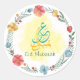 Redonda Pegatina de la Ronda Eid Mubarak con flores blanca