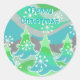 Redonda Pegatina de la ronda "Feliz Navidad" verde de los