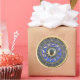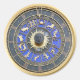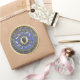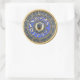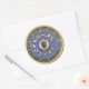 Pegatina redondo con una imagen de una rueda zodiaca azul y dorada. Vea confección y papel de envoltura. Vea la colección completa de Pegatinas Gemstones & Medallions en la sección CARDS, POSTCARDS & PEGATINAS.