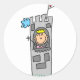 Una adorable figura de palo representa olas de princesa desde la torre del castillo en estos lindos pegatinas de personalizable con figuras de palo.